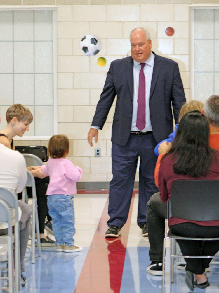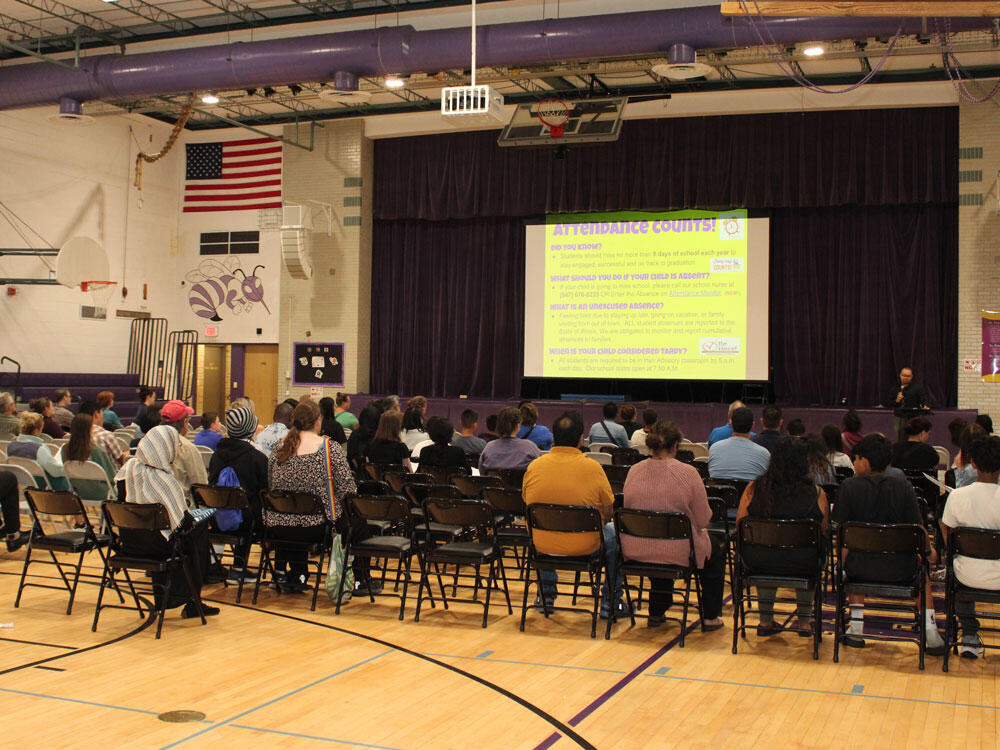 Parents, guardians, and families joined Dr. Kyle for an informal Q&A session at our Meet the Superintendent event on September 11, 2025, at Elizabeth Meyer School. Board of Education President Kelli Nelson was on hand to greet visitors and members of our Multilingual Learners team served as language interpreters. Some of our youngest and littlest learners were present, too, enjoying cookies and quiet time with friends.