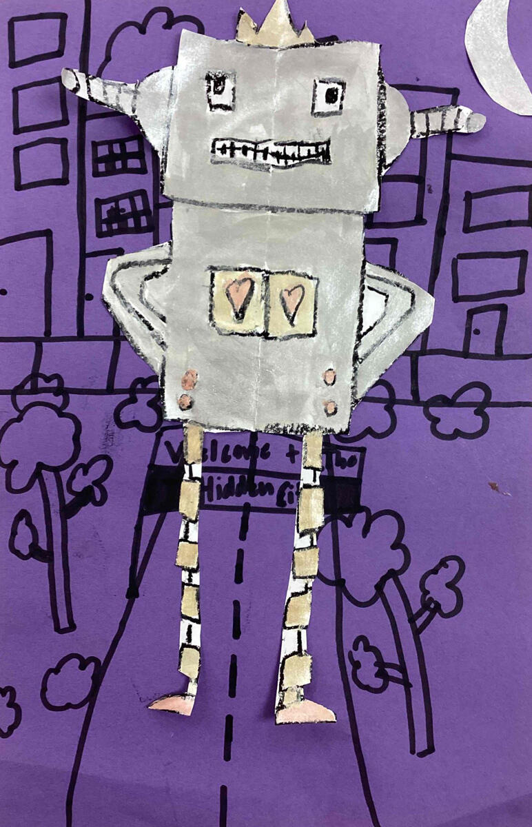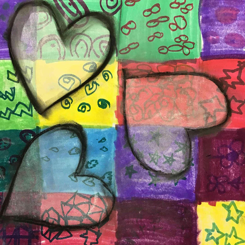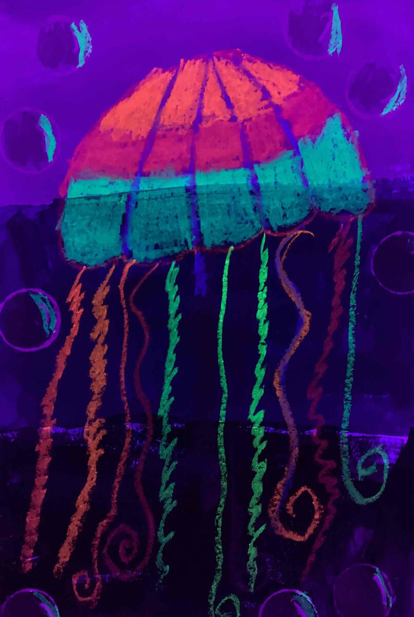 We're wrapping up Youth Arts Month with a gallery of original works from the Middleton Art Room! Click or tap a piece to view the gallery: 2nd grade black light reactive jellyfish (made using materials from a Caring Hearts Grant!) • 1st grade self portraits with custom-mixed skin tones • 2nd grade metallic robots demonstrating symmetry • 5th grade woven optical illusions • 2nd grade "heart art" • 5th grade ceramic cupcake sculptures.