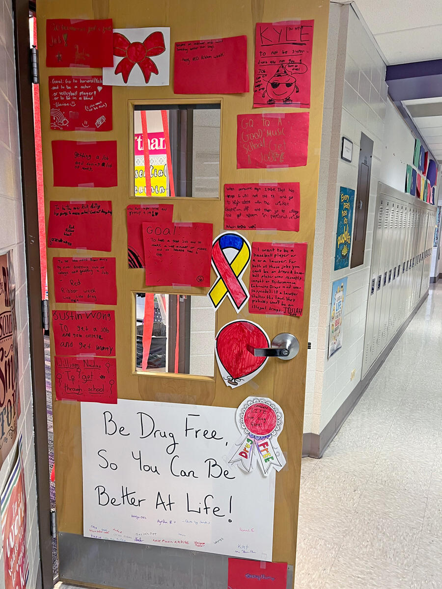 Red Ribbon Week is an alcohol, tobacco, and other drug and violence prevention awareness campaign observed annually in October in the United States. This year’s theme is Celebrate Life & Live Drug Free. Students participated in a variety of themed days this week and learned about the importance of staying drug free. The final activity was a door decorating contest with their advisory class!